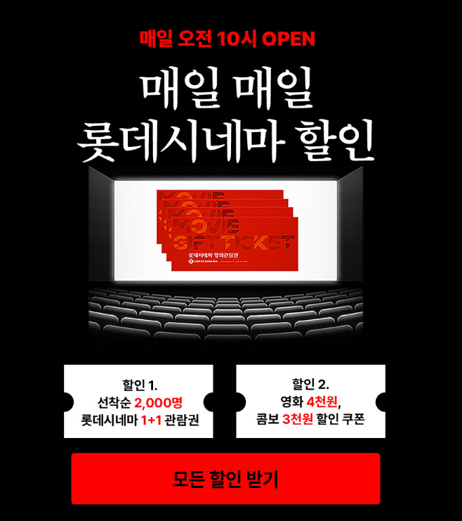 이번 롯데레드페스티벌을 통해 할인가로 즐거운 쇼핑과 문화생활 즐기시고 백만 포인트 이벤트도 꼭 참여해 보세요. 3개의 계열사에서 쇼핑하시고 스탬프 적립 응모하시면 당첨확률이 10배나 올라간다고 하니 도전해 보세요!